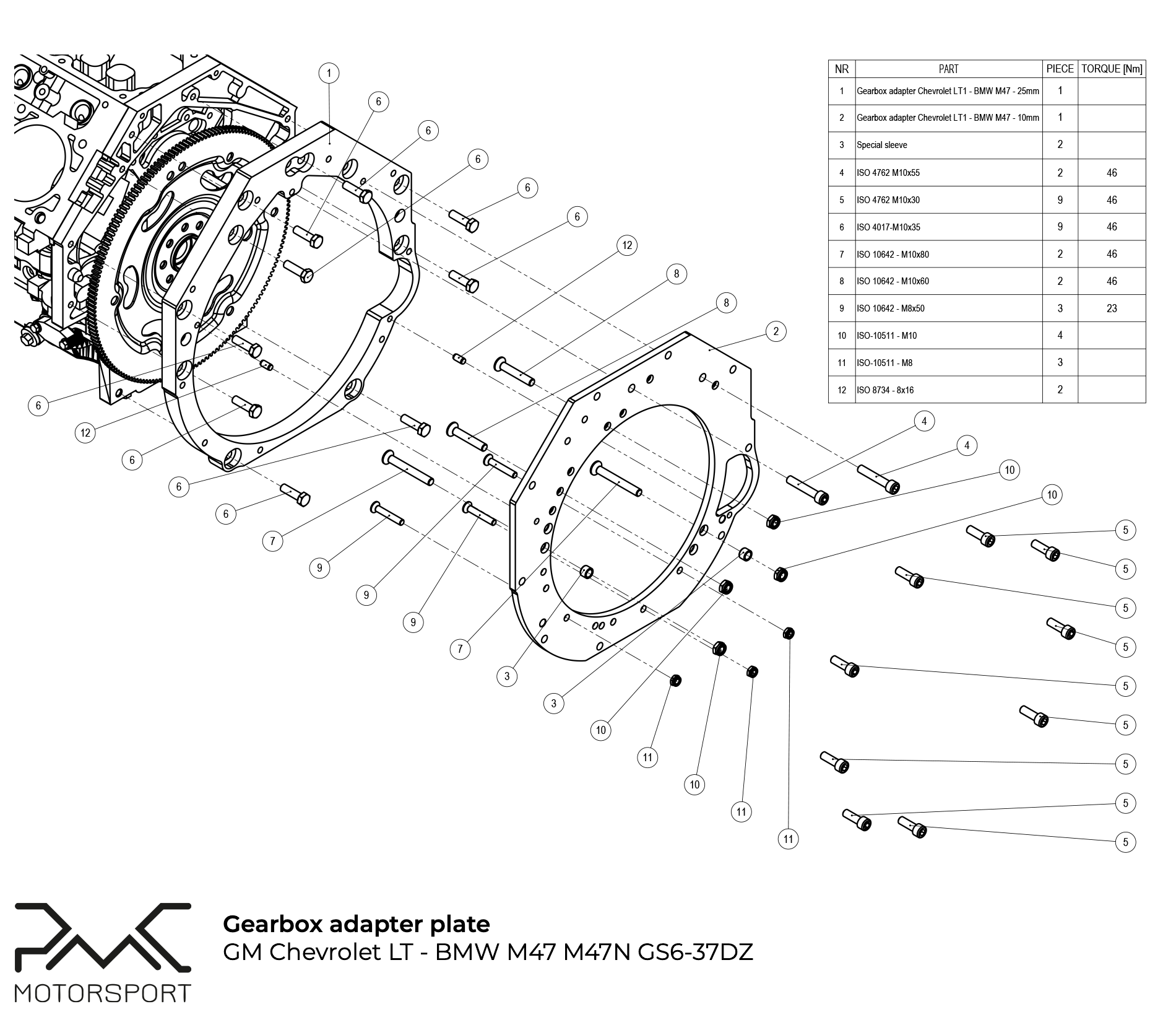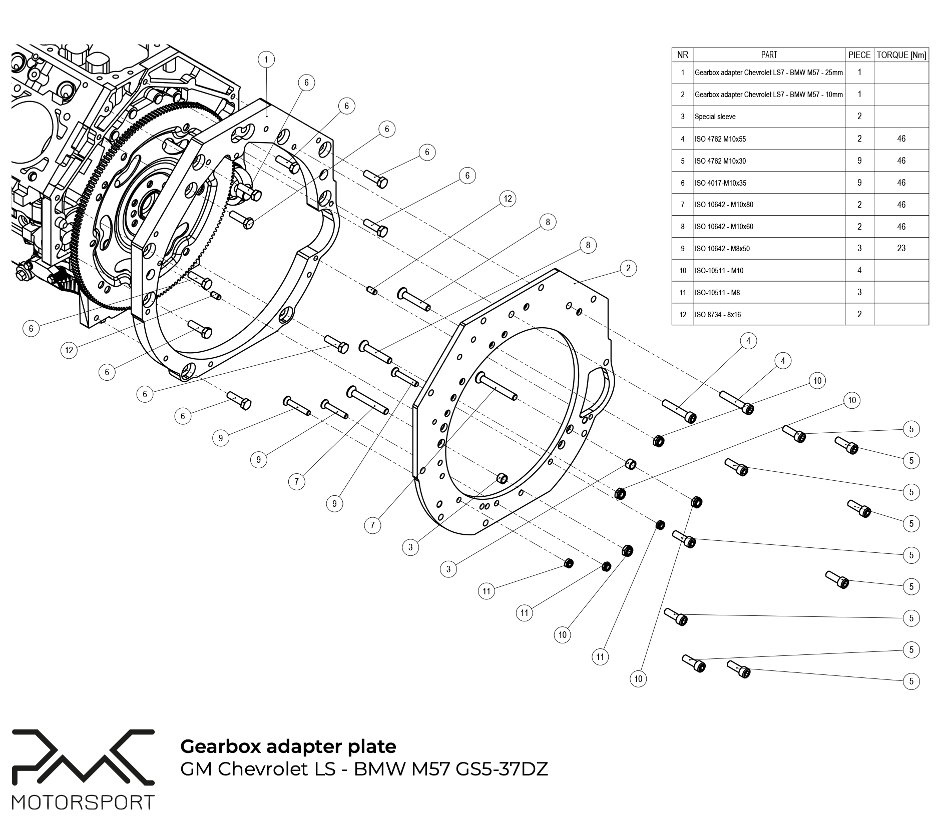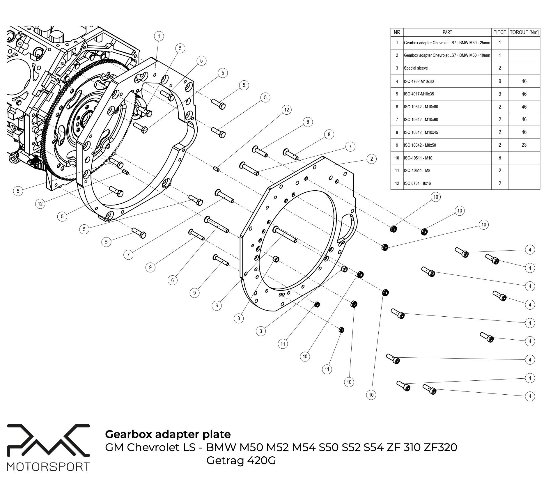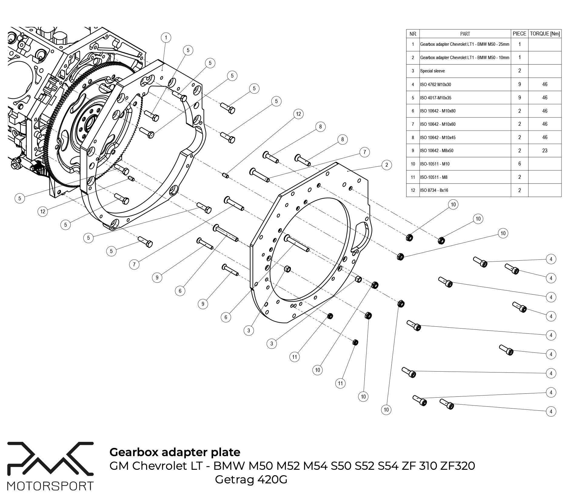- PMC Motorsport Adapter Plate (gearbox adapter / transmission adapter) GM Chevrolet V8 LS - BMW ZF 310 / ZF 320 ZF 5 / ZF GS5-39DZ / ZF GS6-37DZ / GS6-53DZ HGA / Getrag 420G