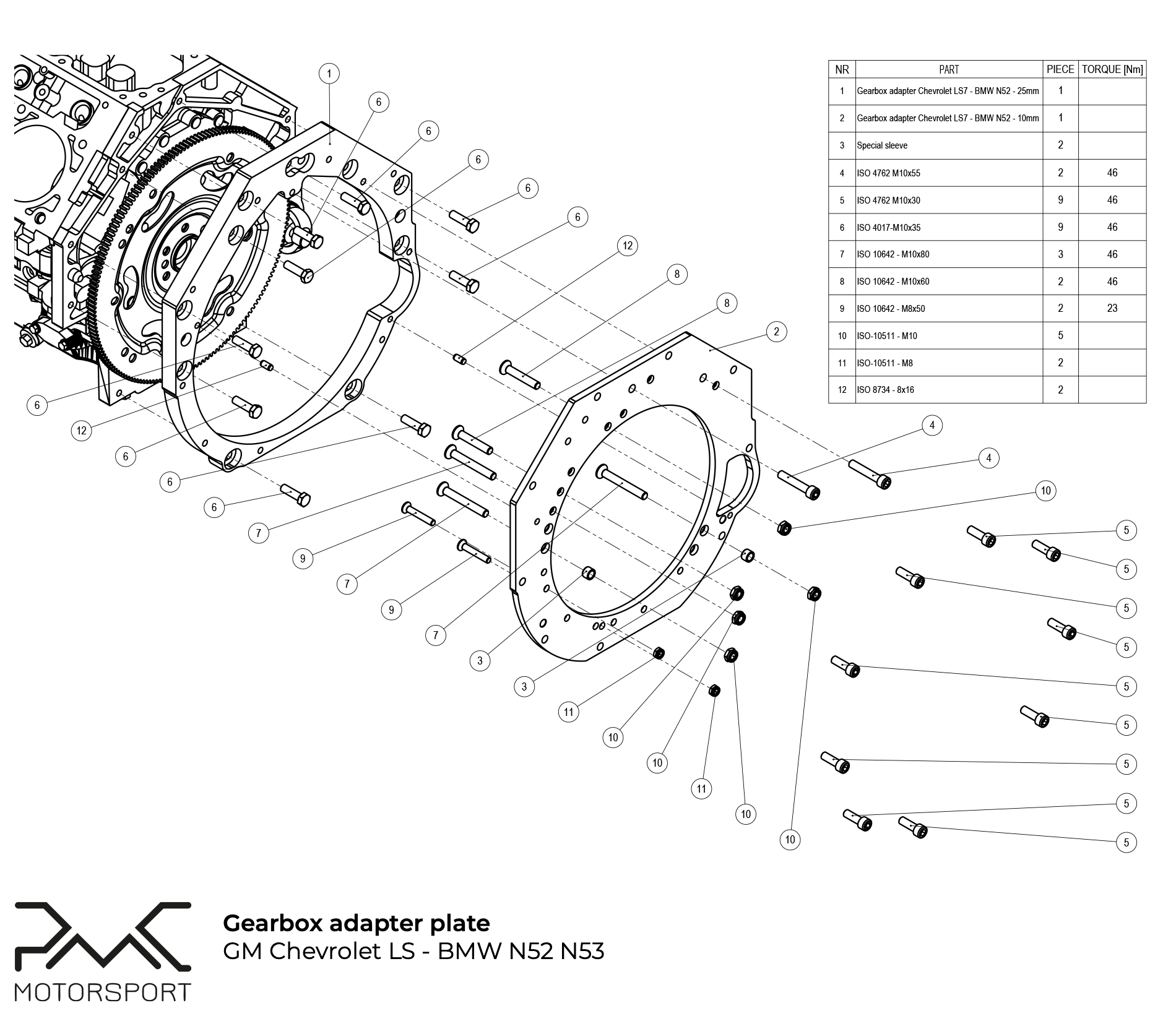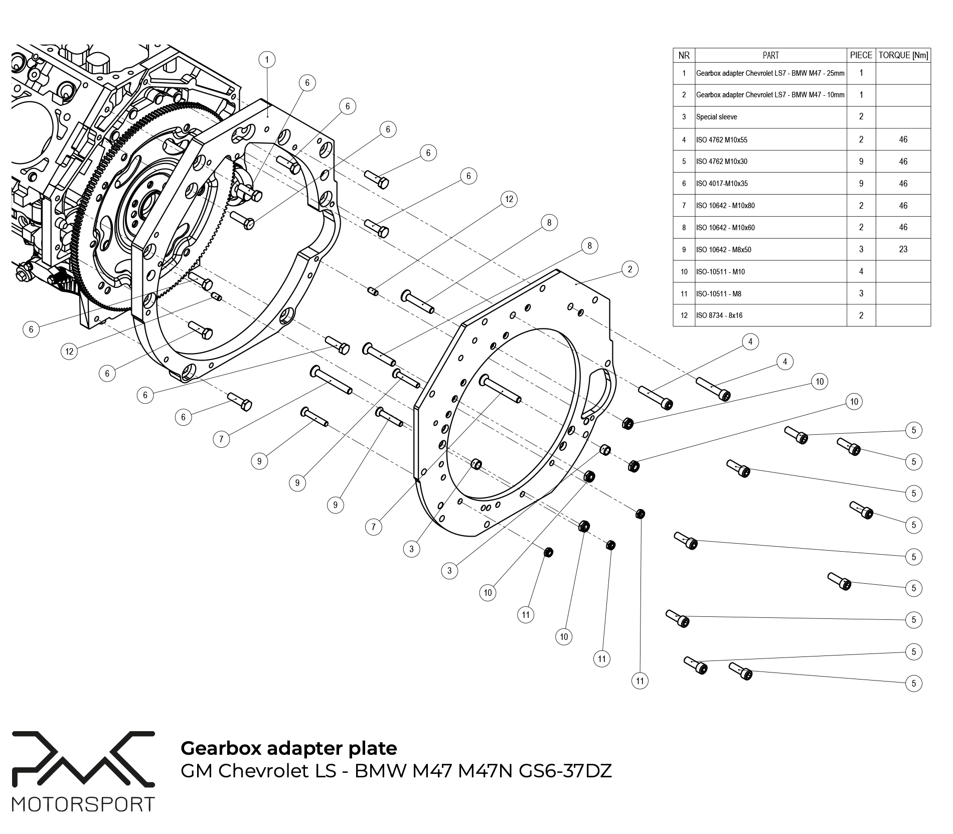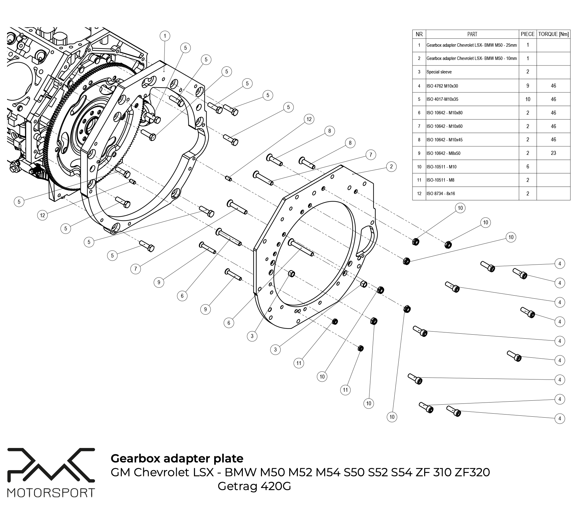- PMC Motorsport Adapter Plate (gearbox adapter / transmission adapter) GM Chevrolet V8 LS - BMW ZF 310 / ZF 320 ZF 5 / ZF GS5-39DZ / ZF GS6-37DZ / GS6-53DZ HGA / Getrag 420G