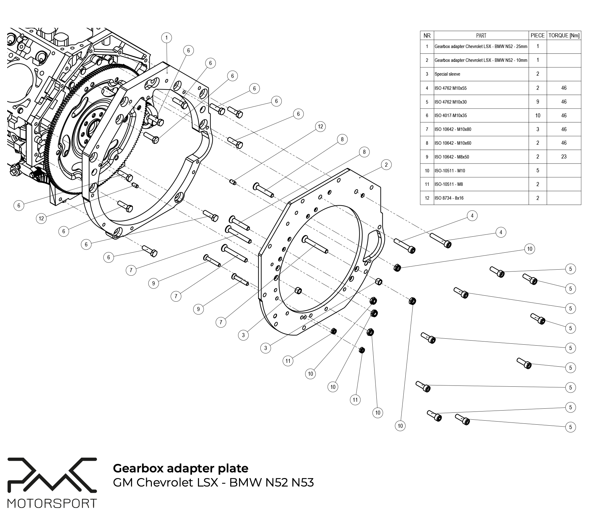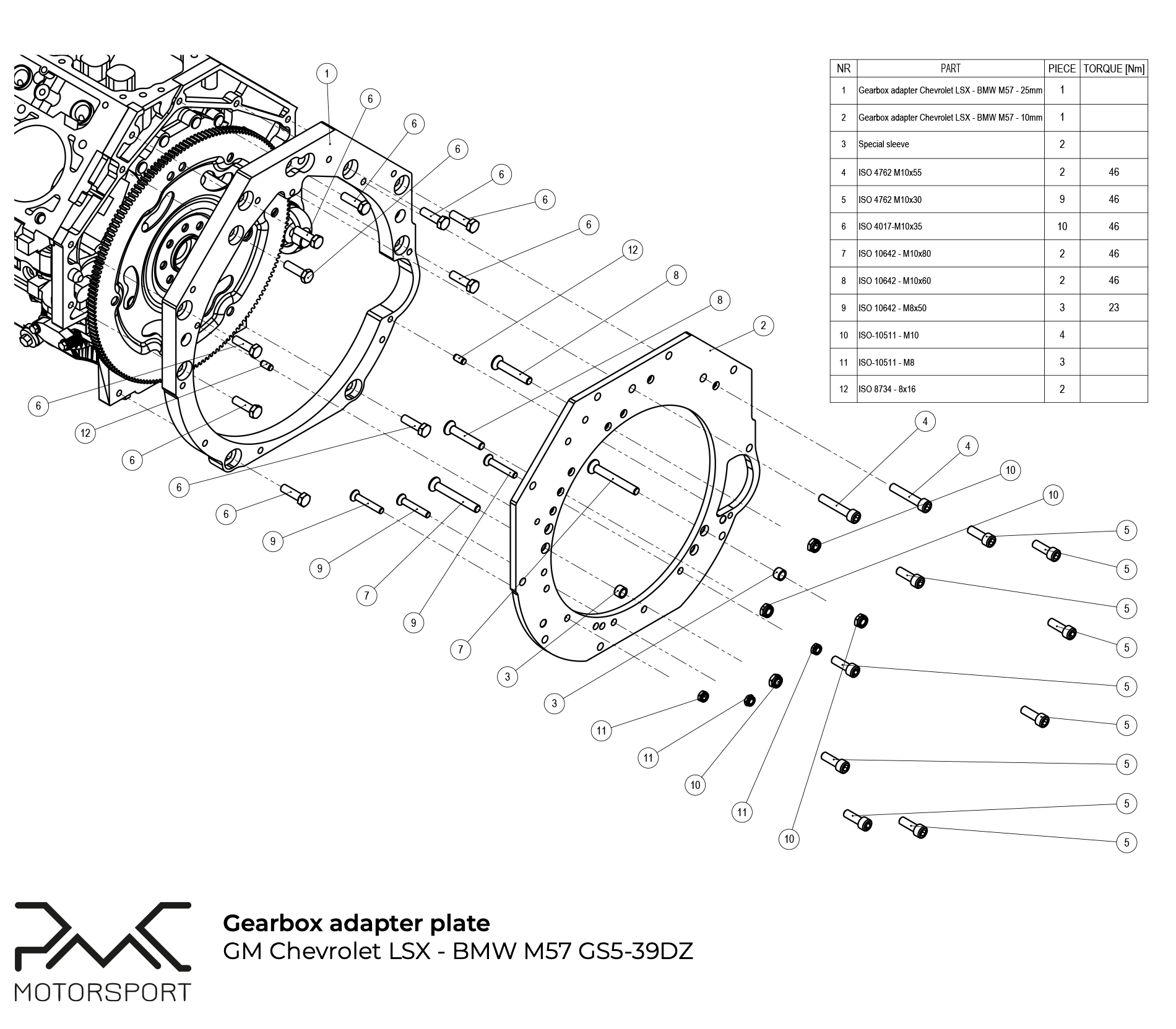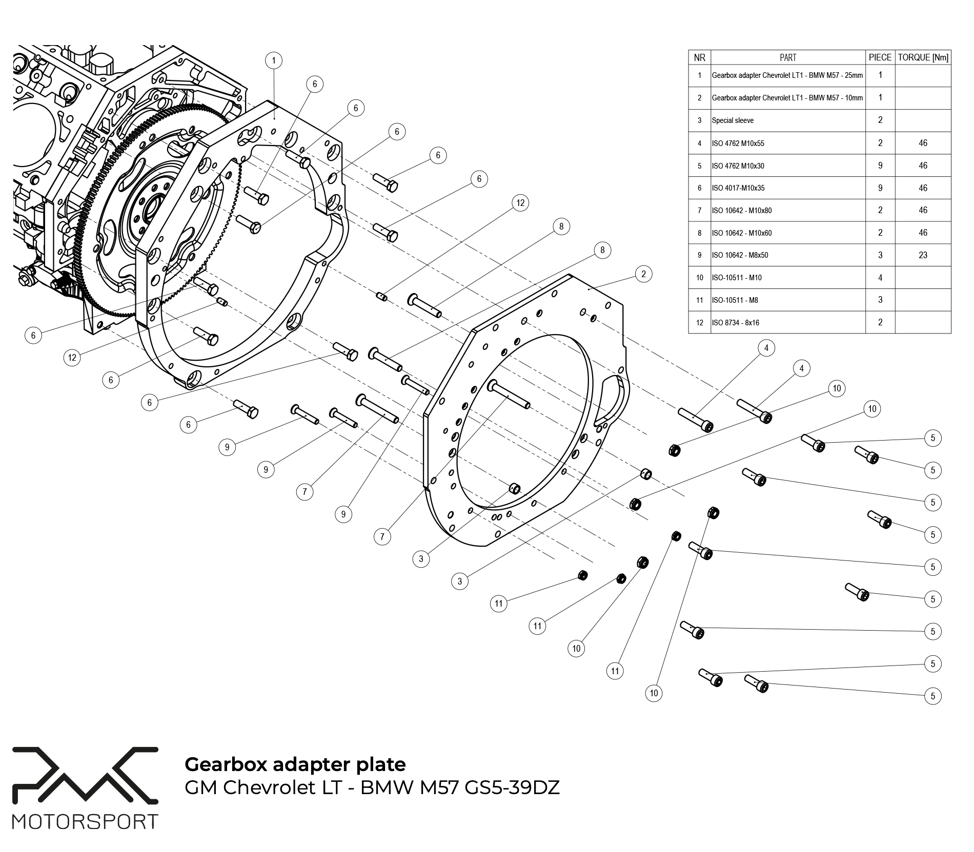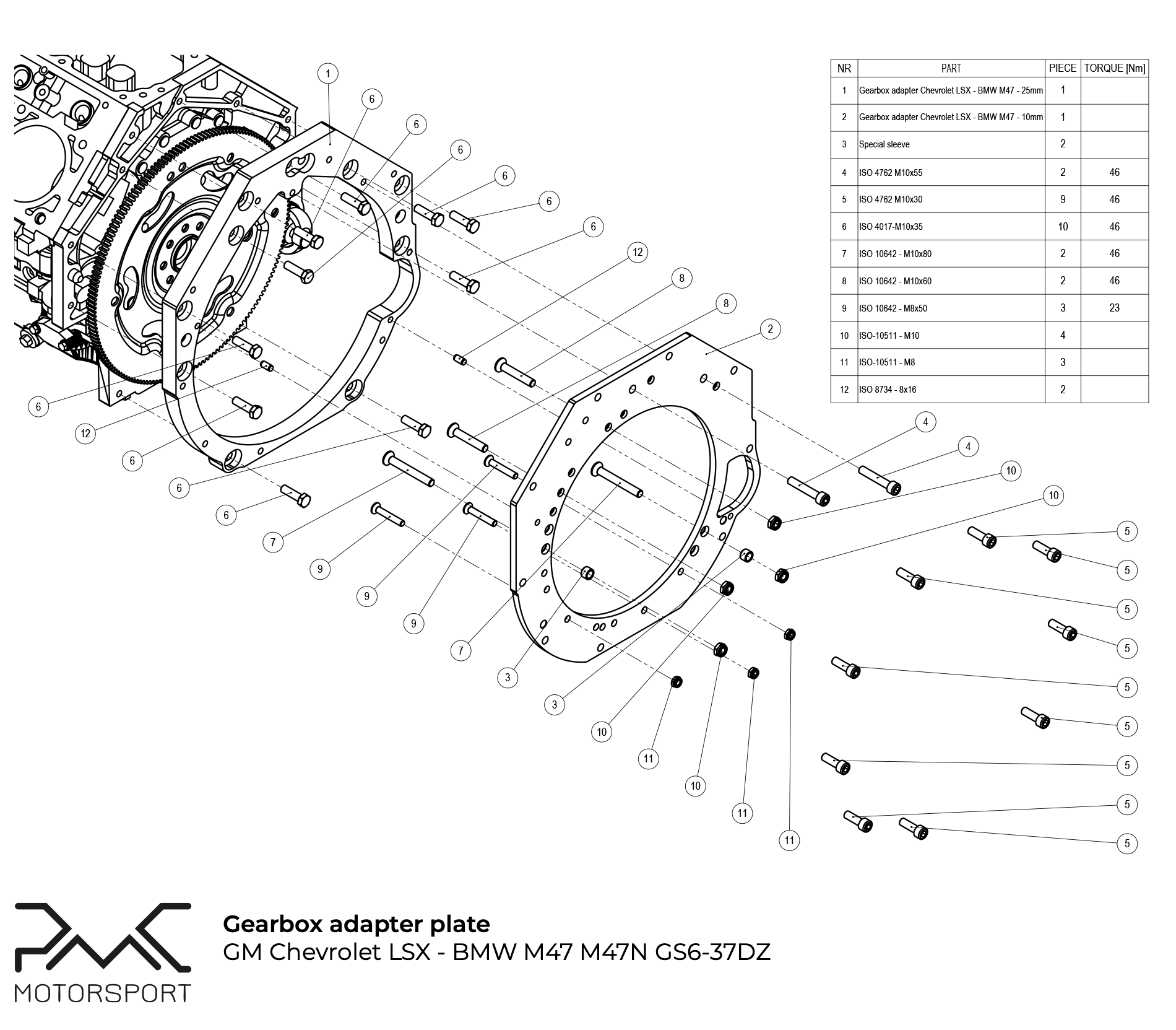 - PMC Motorsport Adapter Plate (gearbox adapter / transmission adapter) GM Chevrolet V8 LS - BMW ZF 310 / ZF 320 ZF 5 / ZF GS5-39DZ / ZF GS6-37DZ / GS6-53DZ HGA / Getrag 420G