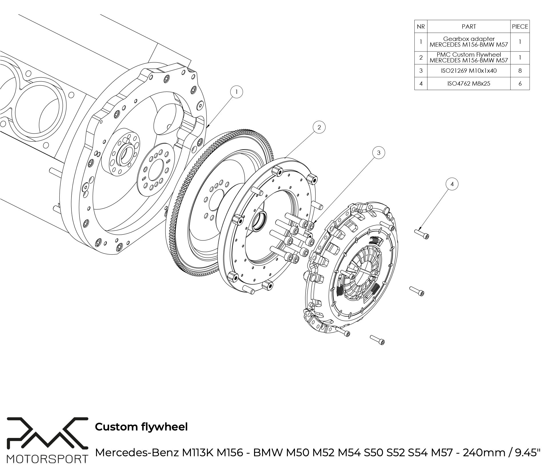 - PMC Motorsport Lightweight custom aluminum flywheel Mercedes-Benz M113 M156 - BMW M50 M52 M54 ZF ZF310 ZF ZF320 ZF5 S5D-250 S50 S52 S54 Getrag 420G - 240mm / 9.45"
