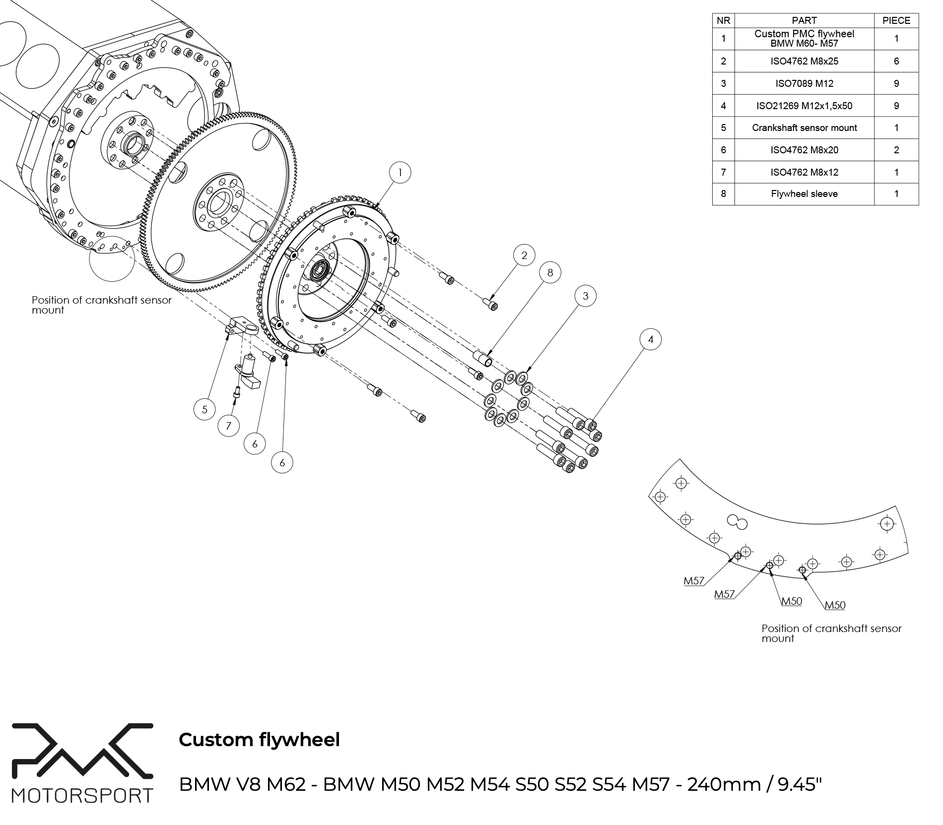 - PMC Motorsport Lightweight custom aluminum flywheel BMW V8 M62 - BMW M50 M52 M54 ZF ZF310 ZF320 S5D-250 M57 GS5-39DZ S50 S52 S54 Getrag 420G - 240mm / 9.45"
