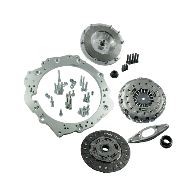 The Toyota 1JZ 2JZ - BMW flywheel is designed for a clutch pressure plate from BMW M57 / M57N / M57N2 / N54 / B58 / BMW E46 M3 / Sachs Performance 883082.001243. Clutches from companies like ACT / Spec / Tanaci are very often used with our kit (it is important that the custom clutch pressure plate also fits the BMW OE flywheel: BMW M57 / M57N / M57N2 / N54 / B58). For your gearbox, you should use a clutch disc with the appropriate splines, a dedicated release bearing kit, and a slave cylinder.