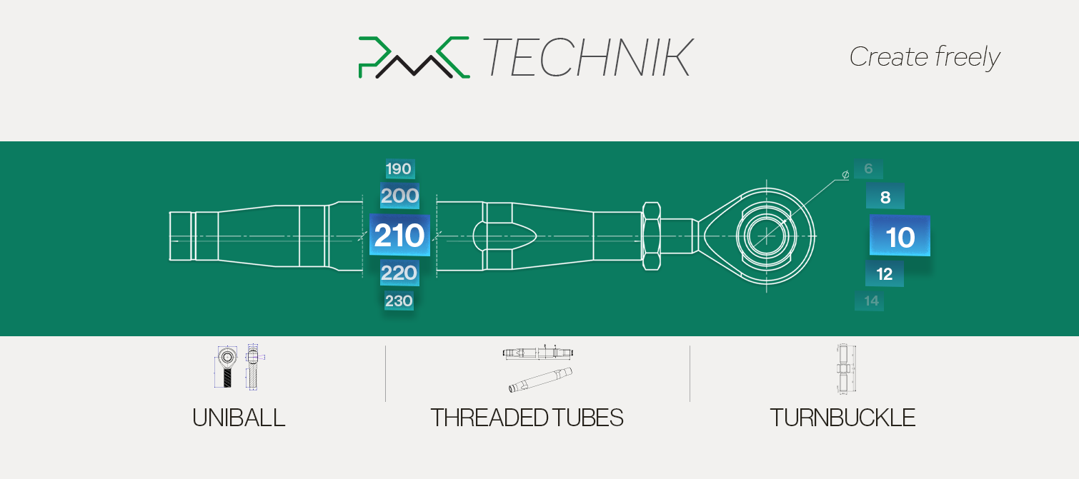 The PMC Technik double-threaded steel arm / tube is a high-quality steel tube with an outer diameter of 25mm (0.99") and a wall thickness of 2,9mm (0.11"), designed for both track motorsport and off-road applications. Choose the right tube length for adjustable control arms, steering tie rods, etc.
