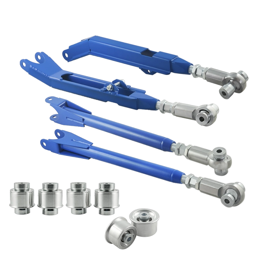 - Adjustable control-arm set plus aluminium control-arm bushings designed for BMW E36 (excludes E36 Compact). The arms are made from high-grade steel, precision-welded and painted blue. Intended for coil-over suspension and built for motorsport use.