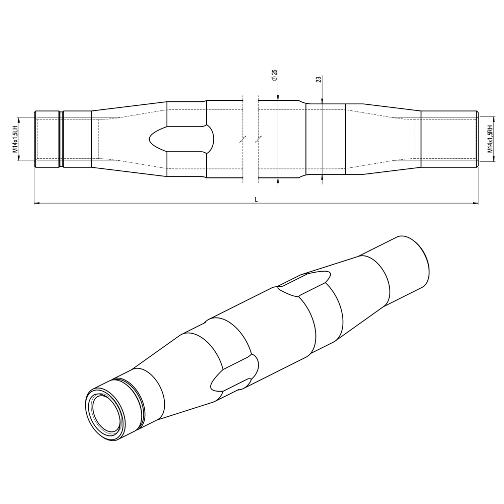Steel Arm / Tube, Double-Threaded – M14x1.5 - (200mm / 7.87")
