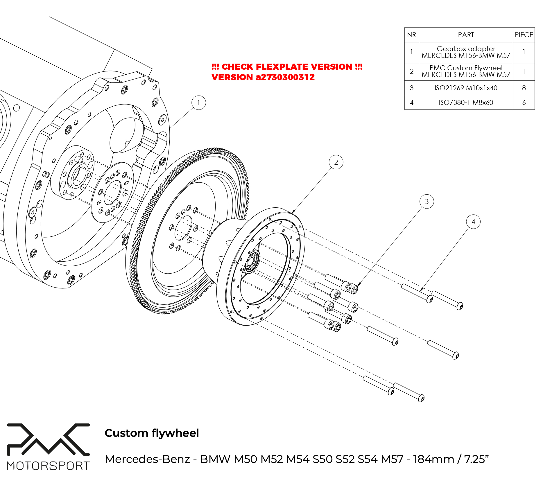 - PMC Motorsport le volant d’inertie customisé Mercedes-Benz M113 M156 - BMW M50 M52 M54 ZF ZF310 ZF ZF320 S5D-250 S50 S52 S54 Getrag 420G M57 GS5-39DZ - 184mm 7.25" POT