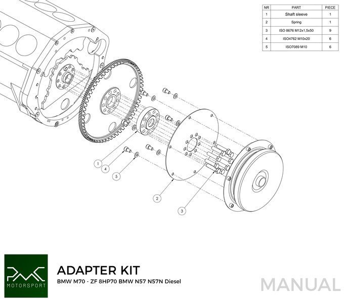 - PMC Motorsport aluminium torque converter adapter ZF 8HP70 BMW N57 N57N Diesel - BMW V12 M70