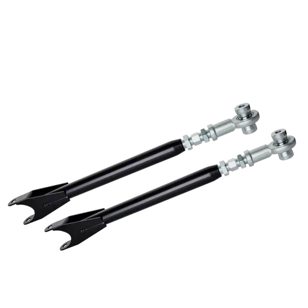 Kit de bras réglables et bagues en aluminium destiné à la BMW E46. Les bras sont en acier de haute qualité, soudés avec précision et peints en noir. Conçu pour suspensions filetées ; pièces dédiées au sport automobile.