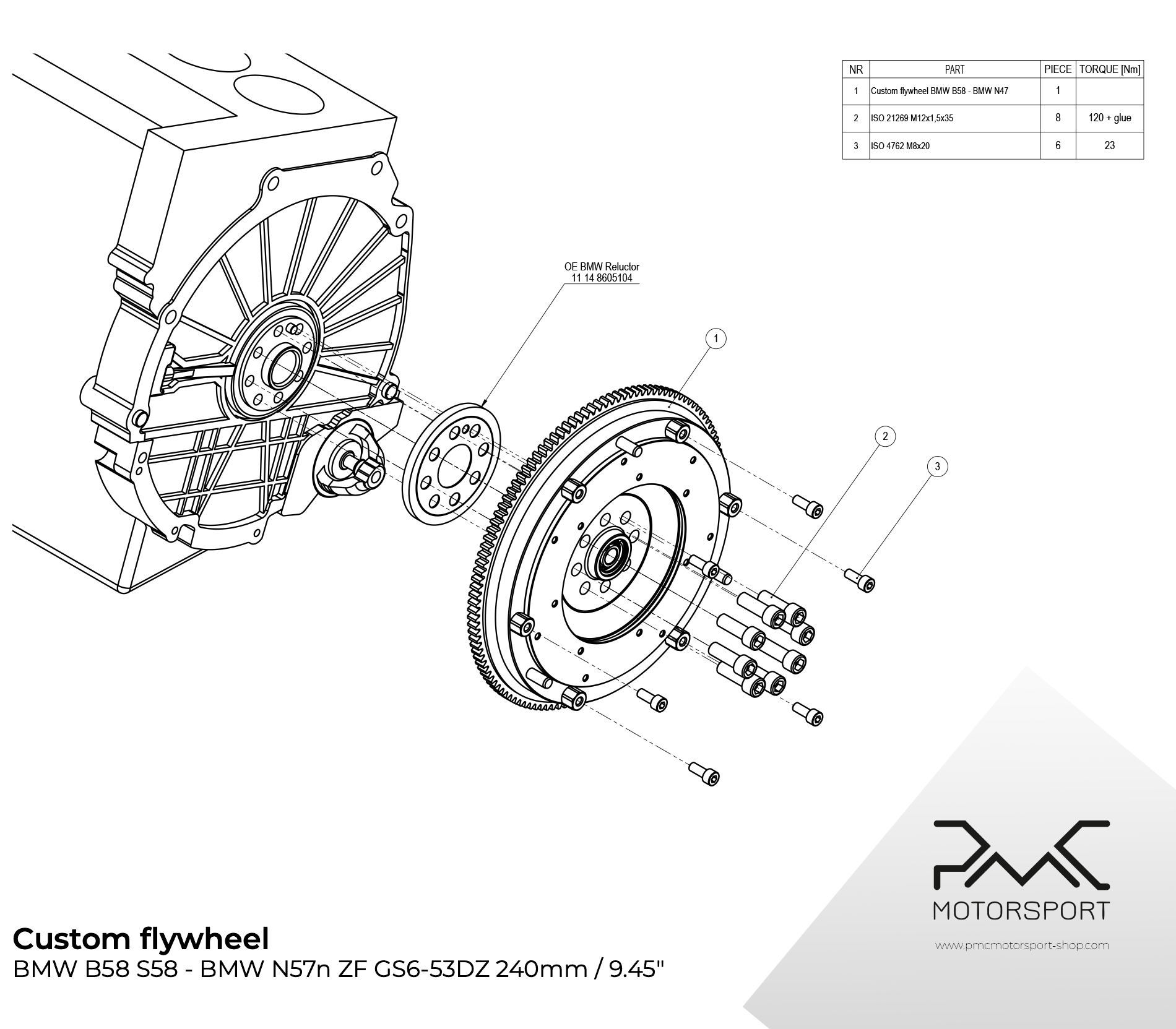 Volant Moteur Personnalisé PMC Motorsport BMW B58 S58 - BMW N57n ZF GS6-53DZ HS1 HB7 HAF F10 530D 6 vitesses Diesel - 240mm / 9.45"
