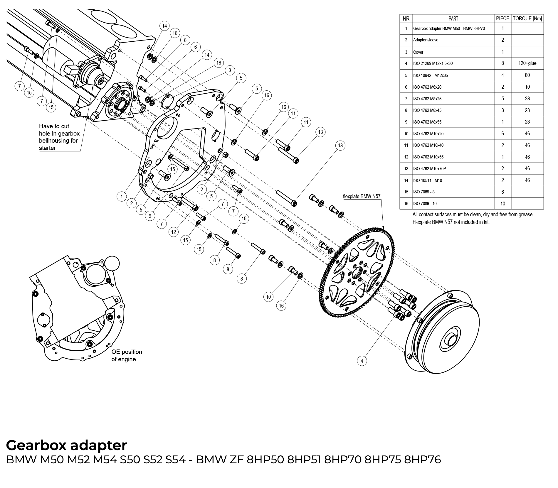 Für den Getriebeadapter PMC Motorsport ist der Anlasserkranz/das Schwungrad vom BMW Automatikgetriebe OE 11 22 8 506 670 / 11 22 8506670 / OE 11 22 8 612 144 / 11 22 8612144 (nicht im Kit enthalten) erforderlich.