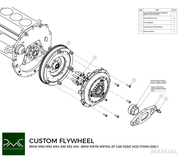 - PMC Motorsport Leichtes Custom Aluminium Schwungrad BMW M50 S50 M52 S52 M54 S54 - BMW M57N2 ZF GS6-53DZ HGD JGA E60 525D 530D 6-Gang Diesel - 215mm / 8.46" Twin disc