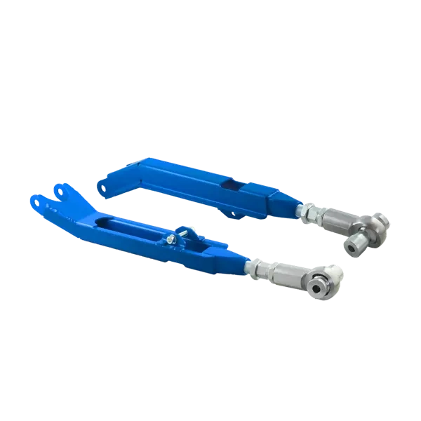 Verstellbarer Querlenkersatz für BMW E36 (nicht für E36 Compact). Die Lenker bestehen aus hochwertigem Stahl, sind präzisionsverschweißt und blau lackiert. Ausgelegt für Gewindefahrwerke; entwickelt für den Motorsport.