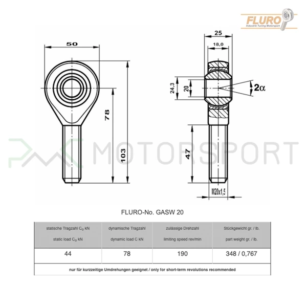 GASW 18 FLURO Gelenkkopf - M18x1.5