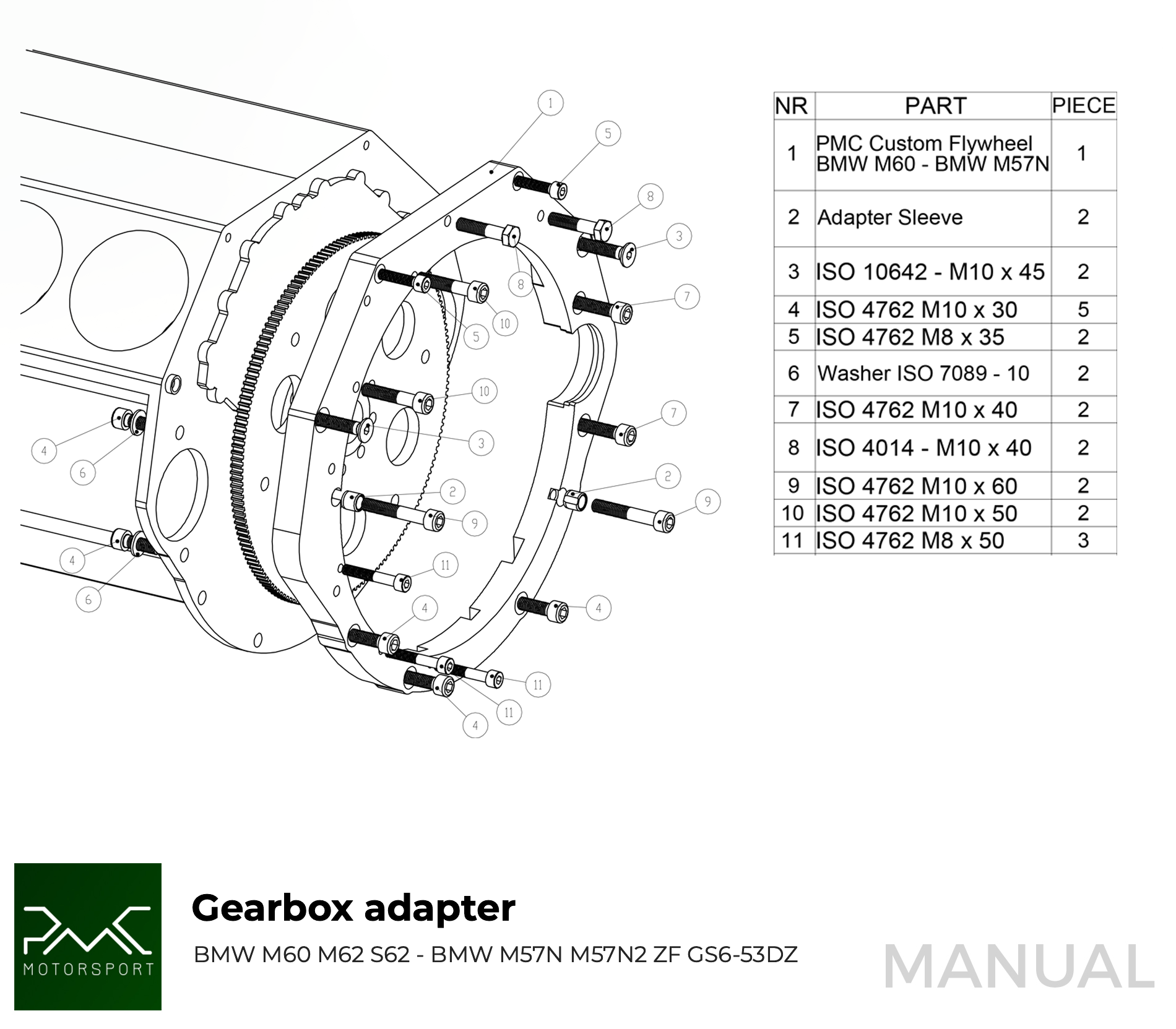 Adattatore cambio PMC Motorsport in alluminio (Trasmissione Piastra) BMW V8 M60 M62 S62 - BMW M57N ZF GS6-53DZ HGK HGU JGA HGD N57 N57N GS6-53DZ JGL ZF 8HP0