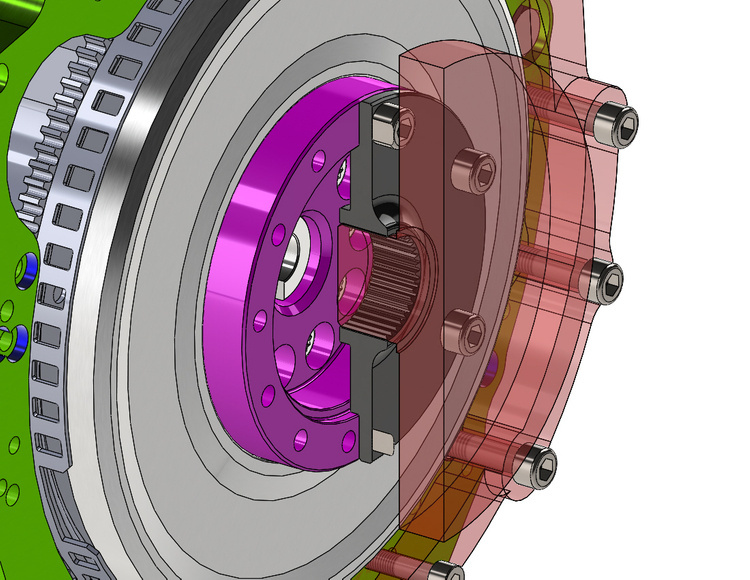 Aluminiowy adapter umożliwiający połączenie (swap / konwersję )silnika Volvo Modular Whiteblock T T5 T6 z automatyczną skrzynią biegów DCT DKG Getrag GS7D36SG