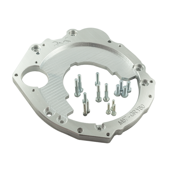 Aluminiowy adapter skrzyni biegów umożliwiający połączenie (swap / konwersję ) 6 cylindrowego silnika BMW M57 3.0 Diesel z skrzynią biegów Nissan Patrol Y60 RD28