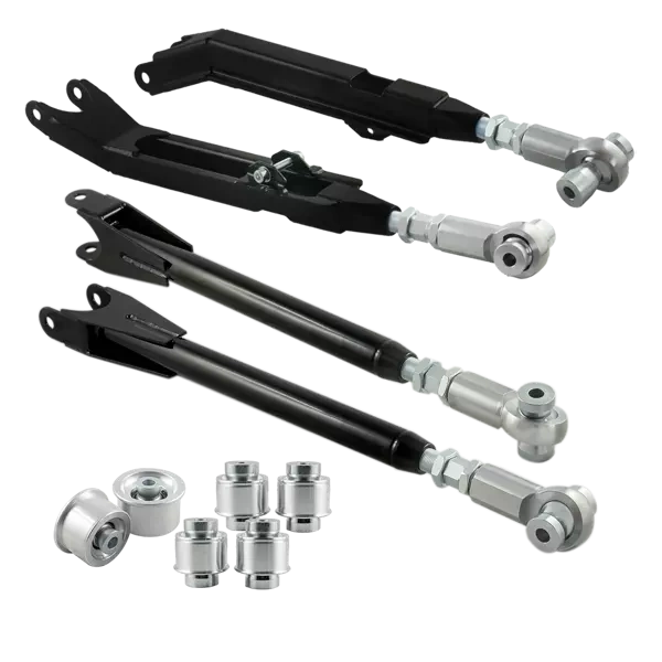 Zestaw regulowanych wahaczy oraz aluminiowych tuleji wahaczy przeznaczony do BMW E36 (nie dotyczy wersji E36 compact). Wahacze wykonane z wysoko gatunkowej stali, precyzyjnie spawane oraz pomalowane na czarno. Zestaw przeznaczony do zawieszenia gwintowanego. Części przeznaczony do motorsportu