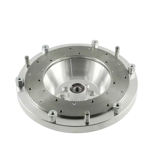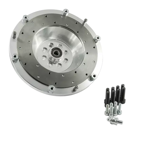 Aluminiowe sztywne customowe koło zamachowe umożliwiające połączenie (swap / konwersje) silnika Saab H B204 B205 B206 B234 B235 z manualną skrzynią biegów ZF GS5-39DZ (ZF Friedrichshafen) pochodzącą z BMW. Koło pasuje do jednej z najbardziej popularnych 5-biegowych skrzyń ZF GS5-39DZ z BMW e39 530D
