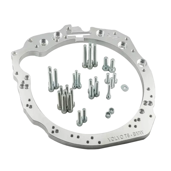 Adapter umożliwiający połączenie (swap / konwersje) silnika Ford ST 2.5 HUBA HUWA HYDB JZDA z automatyczną 8-biegową skrzynią biegów ZF 8HP (ZF Friedrichshafen) pochodzącą z BMW. Zestaw zawiera : aluminiowy adapter skrzyni biegów oraz adapter konwertera.