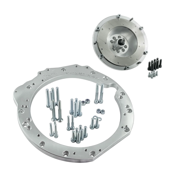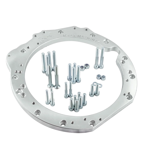 Flange de alumínio projetado para converter o motor Mercedes-Benz V8 M113 M113 AMG, com a caixa de velocidade manual ZF (ZF Friedrichshafen) / Getrag de BMW.