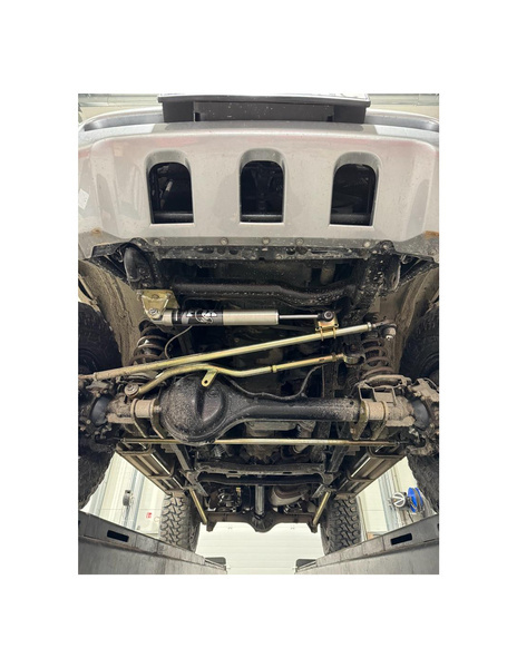 O suporte relocaliza o amortecedor de direção do ponto de fábrica exposto (sob a barra de direção) para uma posição segura acima da barra de direção e da panhard. Assim, o sistema de direção do Nissan Patrol Y61 torna-se mais fiável em condições todo-o-terreno extremas.
