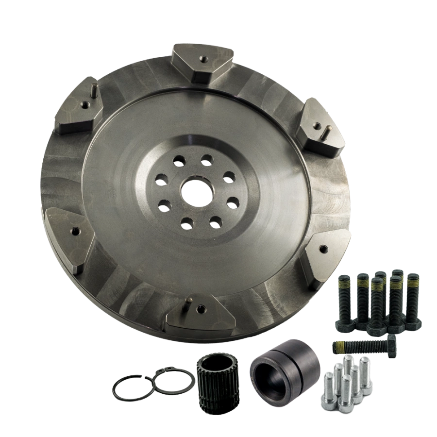 Kit de embraiagem com volante rígido em ferro fundido, permitindo a ligação (swap / conversão) de um motor BMW M57n M57n2 de 6 cilindros com uma caixa de velocidades Nissan Patrol Y61 ZD30 / Y61 TD42. Kit com embraiagem de disco duplo.