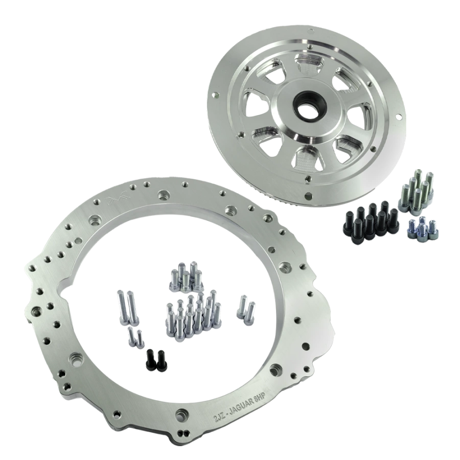 Adaptador que permite ligar (swap / conversão) o motor Toyota JZ 1JZ 2JZ a uma caixa automática ZF 8HP de 8 velocidades proveniente da Jaguar (ZF Friedrichshafen). O kit inclui: adaptador da caixa de velocidades em alumínio e adaptador do conversor com cremalheira de arranque, permitindo manter o motor de arranque original do Toyota JZ.