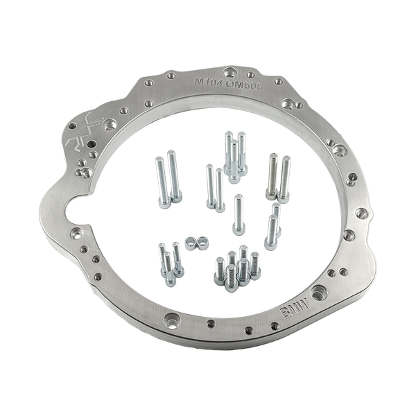 Adaptador que permite la conexión (swap / conversión) de un motor Mercedes-Benz OM605 OM606 con una caja de cambios automática de 8 velocidades ZF 8HP (ZF Friedrichshafen) de BMW. El kit incluye: adaptador de caja de cambios de aluminio y adaptador de convertidor.