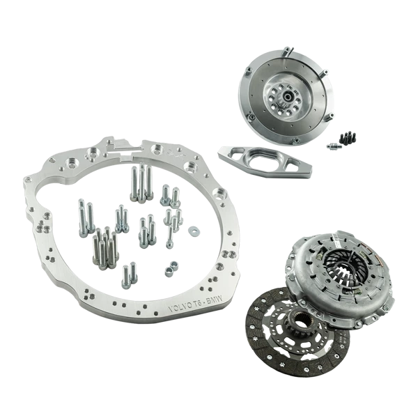 Adaptador que permite conectar (intercambio / conversión) un motor Volvo "White" T5 T6 con una transmisión manual ZF (ZF Friedrichshafen) utilizada en BMW. La solución perfecta para competiciones automovilísticas amateur y profesionales.