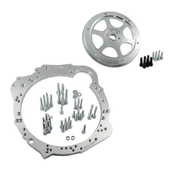 Adaptador que permite conectar (swap / conversión) el motor Nissan RB RB20 RB25 RB26 RB30 con una caja automática ZF 8HP de 8 velocidades procedente de BMW (ZF Friedrichshafen). El kit incluye: un adaptador de caja de aluminio y un adaptador de convertidor con corona de arranque, lo que permite mantener el motor de arranque original del Nissan RB.