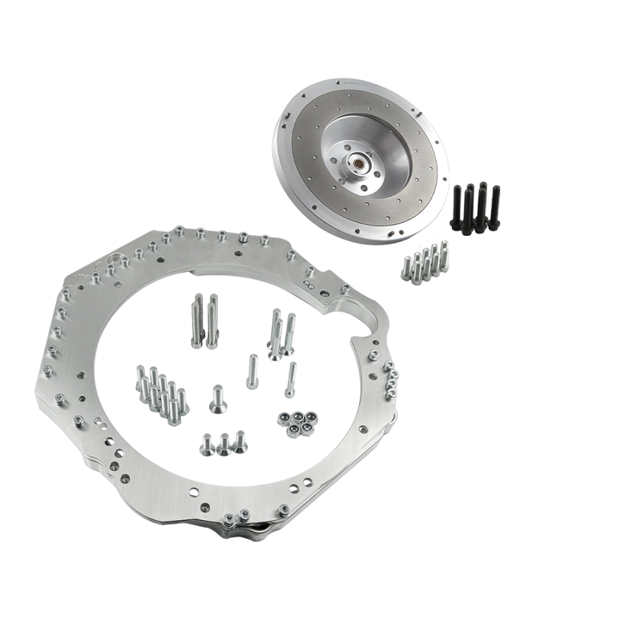 Adaptador que permite conectar (intercambio / conversión) un motor GM Chevrolet LS LS1 LS2 LS3 LS6 LS7 L99 / Vortec con la transmisión manual de un Nissan 350Z. La solución perfecta para competiciones automovilísticas amateur y profesionales.