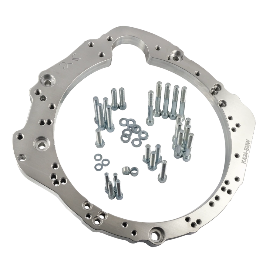 Adaptador que permite conectar (swap / conversión) el motor Nissan KA24 con una caja automática ZF 8HP de 8 velocidades procedente de BMW (ZF Friedrichshafen). El kit incluye: un adaptador de caja de aluminio y un adaptador de convertidor con corona de arranque, lo que permite mantener el motor de arranque original del Nissan KA24.